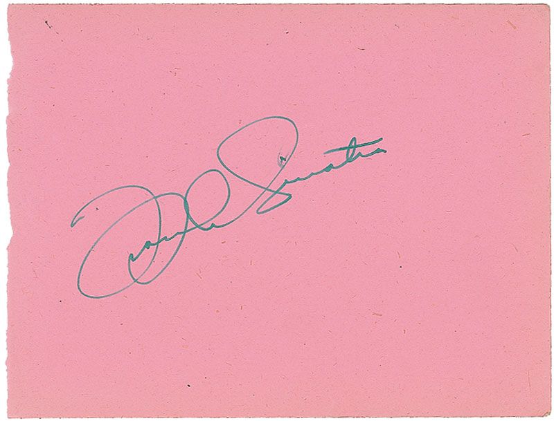 Choice vintage circa late 1940s fountain pen signature, “Frank Sinatra,” on a pink 5.5 x 4.25 album page. In fine condition. Accompanied by a photocopied letter of provenance from the original collector, stating that she collected autographs outside of London hotels during her teenage years from 1946 to 1950. A beautiful example.