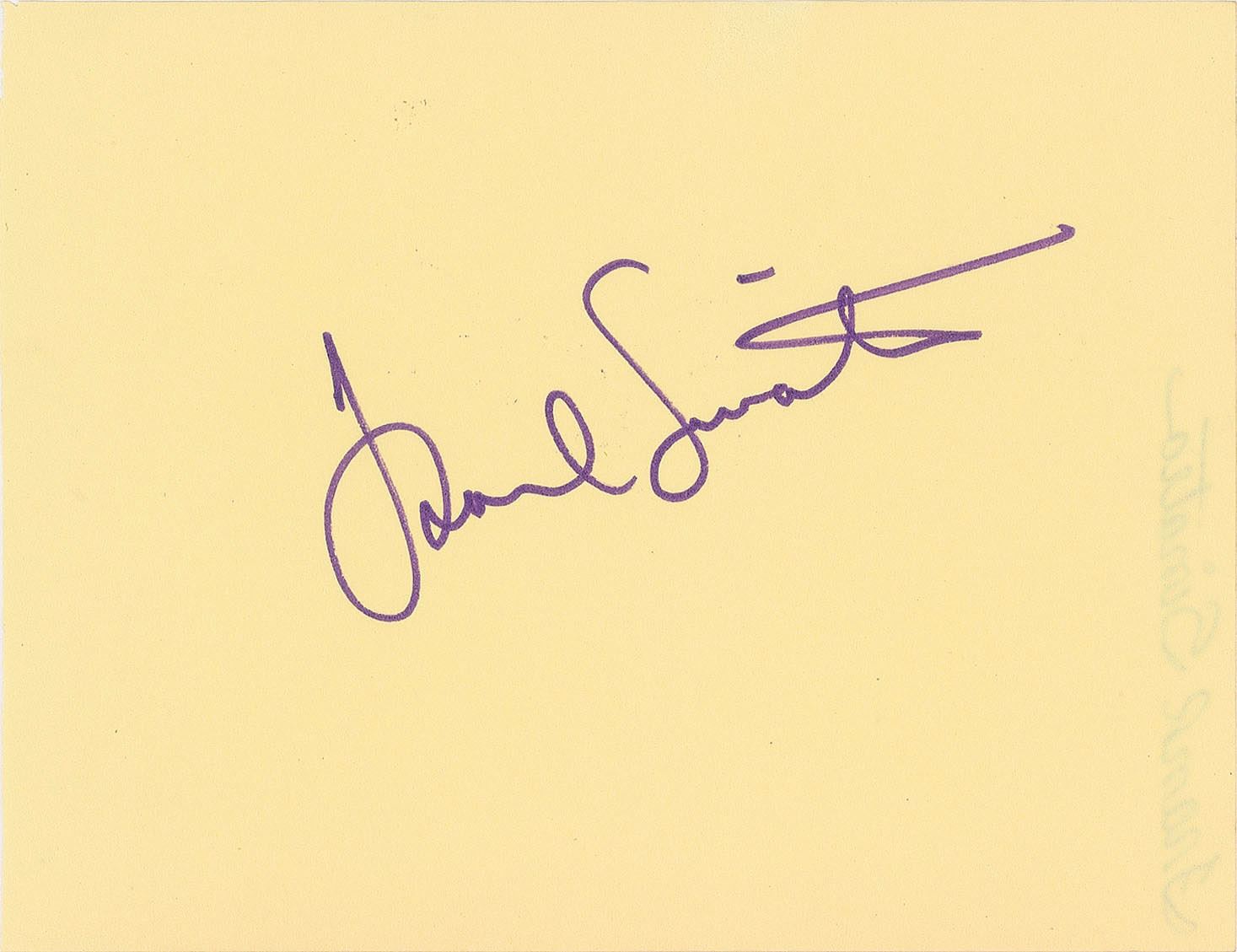Perfect purple felt tip signature, "Frank Sinatra,” on a light yellow 5.5 x 4.25 album page. In fine condition.