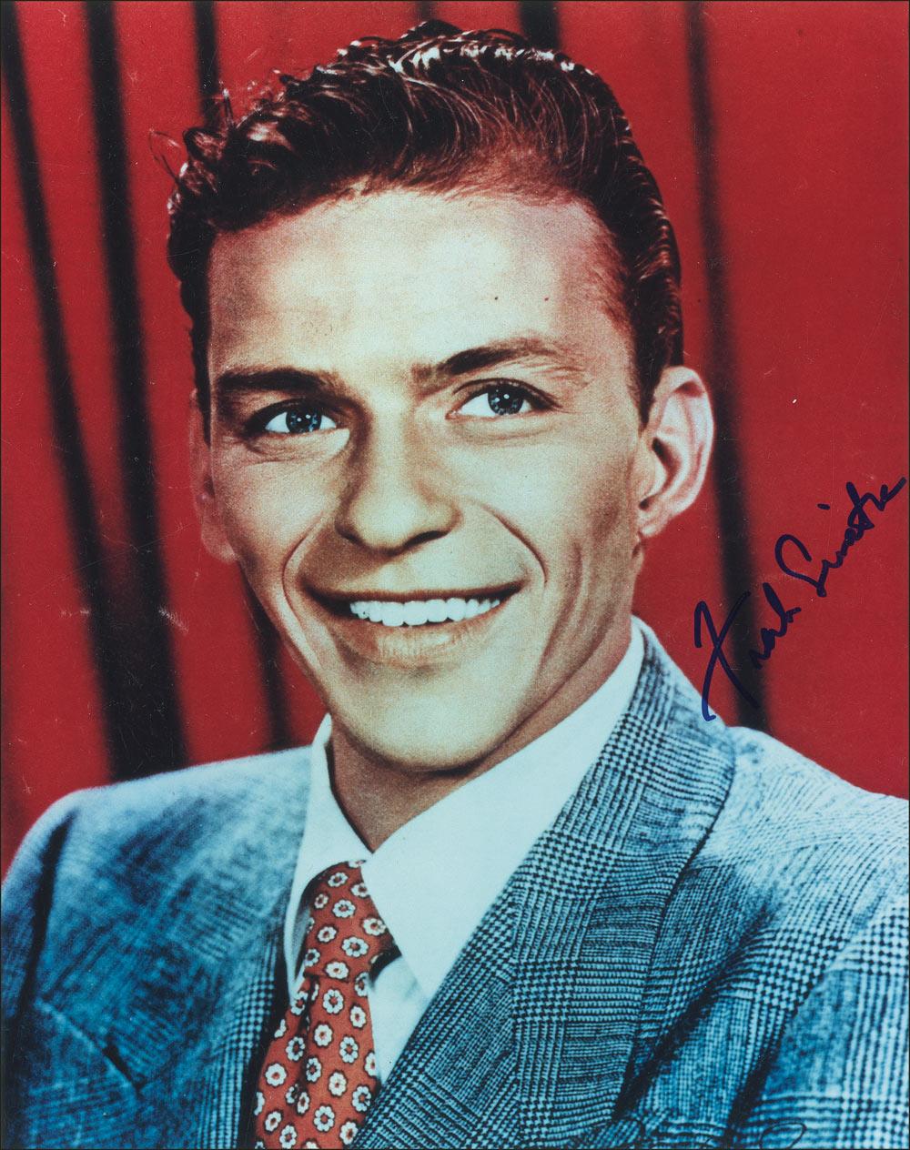 Color glossy 8 x 10 photo of Ol’ Blue Eyes in his youth, signed in blue felt tip. In fine condition. According to the consignor, the signature was obtained in the early 1990s by a former Atlantic City security agent who had met Sinatra several times. A highly desirable in-person example of the Chairman of the Board.