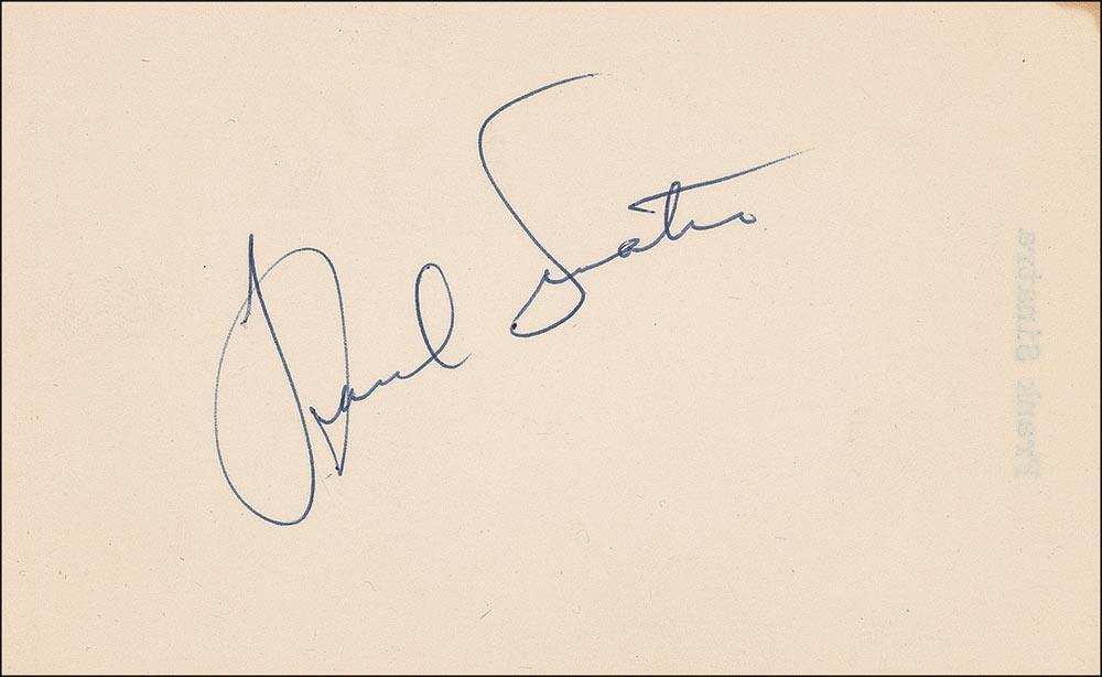 Vintage ballpoint signature, “Frank Sinatra,” on an off-white 5 x 3 sheet. In fine condition, with a trivial vertical impression to left side.