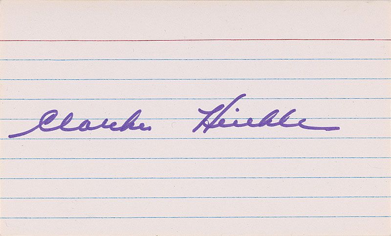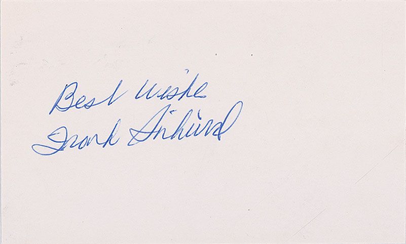 Ballpoint signature, “Best wishes, Frank Sinkwich,” on an off-white 5 x 3 card; and a felt tip signature, “Clarke Hinkle,” on an off-white 5 x 3 lined card. In very fine condition.