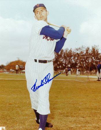 Frank Thomas was traded by the Braves with a player to be named later (Rick Herrscher) to the New York Mets for a player to be named later (Gus Bell) and cash. Despite the team's historically poor inaugural season, Thomas led the expansion Mets with 34 HRs and 94 RBIs. His home run mark would last as a Mets' team record until 1975, when Dave Kingman hit 36. Frank Thomas has hand signed this New York Mets 8x10 Photo. Certificate of Authenticity from Athlon Sports.