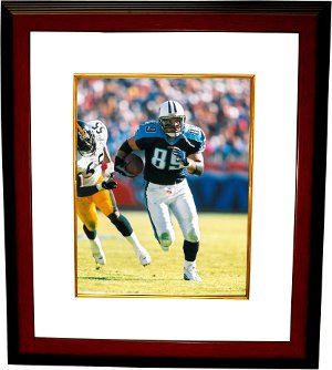 Frank Wycheck's stellar performance on the field with the Tennessee Titans and visibility in the media helped him become one of the most popular players on the team. Wycheck amassed 505 receptions for 5,126 yards and 28 touchdowns over his 11-year career, one of only five tight ends to surpass 500 receptions in NFL history. Wycheck led the Titans in receiving for three consecutive seasons (1999–2001). He also made the Pro Bowl in 1998, 1999 and 2000. Wycheck is perhaps most famous for his particiption in the Music City Miracle, where, with the Titans down 16-15 with 16 seconds remaining, to the Buffalo Bills in the wild card round of the playoffs in 2000, after taking a handoff from Lorenzo Neal, he lateraled the ball to Kevin Dyson, who turned the ball upfield 75 yards for the game winning touchdown. This is a color unautographed 8x10 Photo of Tennessee Titans Superstar Tight-End Frank Wycheck. White Mat and Wood Color Framed as shown.