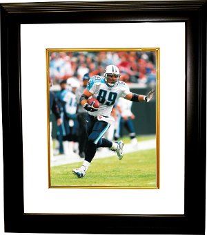 Frank Wycheck's stellar performance on the field with the Tennessee Titans and visibility in the media helped him become one of the most popular players on the team. Wycheck amassed 505 receptions for 5,126 yards and 28 touchdowns over his 11-year career, one of only five tight ends to surpass 500 receptions in NFL history. Wycheck led the Titans in receiving for three consecutive seasons (1999–2001). He also made the Pro Bowl in 1998, 1999 and 2000. Wycheck is perhaps most famous for his particiption in the Music City Miracle, where, with the Titans down 16-15 with 16 seconds remaining, to the Buffalo Bills in the wild card round of the playoffs in 2000, after taking a handoff from Lorenzo Neal, he lateraled the ball to Kevin Dyson, who turned the ball upfield 75 yards for the game winning touchdown. This is a color unautographed 8x10 Photo of Tennessee Titans Superstar Tight-End Frank Wycheck. White Mat and Black Color Framed as shown.