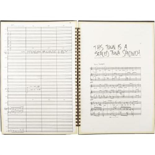 <B>Frank Zappa</B></I> <B><I>200 Motels</B></I></B></I> <B>Score, Script, Album, and Motel Keys.</B></I> "Touring makes you crazy," Frank Zappa said of the inspiration for the 1971 movie <I>200 Motels.</B></I> A movie about life on the road, playing show after show on stage after stage, had a $600,000 budget, seven-day shoot, and an 11-day post-production period, all of which helped capture the sort of chaos Zappa and the Mothers of Invention wanted to depict. Most of the musical soundtrack for this film was recorded live as the film was shot, and like the movie, the double-album soundtrack LP was completed in about a week. Included in this lot is a large composition book labeled "200 Motels Book" with Zappa's named embossed on the cover, containing handwritten sheet music for the Overture, "Touring Can Make You Crazy," "Went on the Road," "This Town is a Sealed Tuna Sandwich," and other songs from the soundtrack. Also include: a copy of the shooting script for the movie, a vintage copy of the soundtrack double-LP, and approximately 200 assorted motel room keys (seriously). Items are in overall Very Fine condition.<BR><BR><b>Shipping:</b> Other (oversized items, group lo (<a target="_blank" href="http://www.heritageauctions.com/common/shipping.php">view shipping information</a>)
