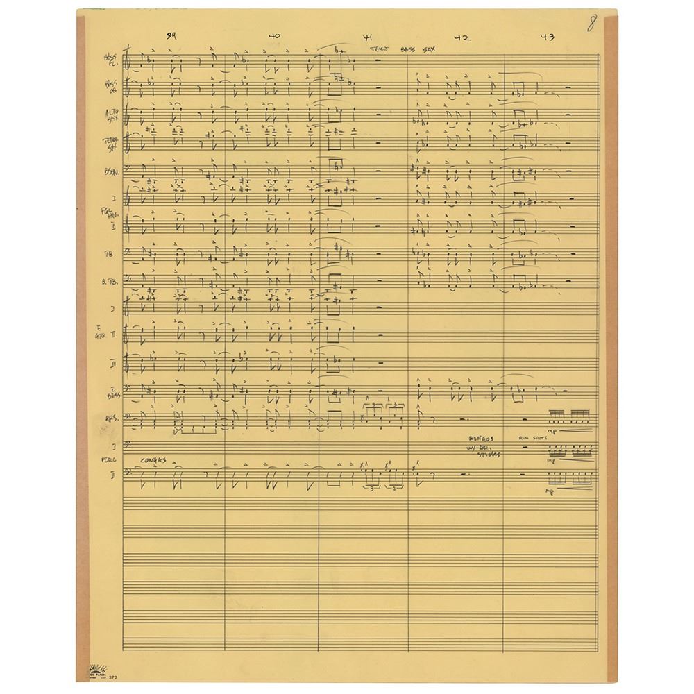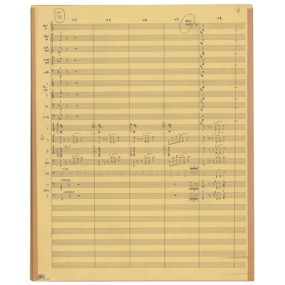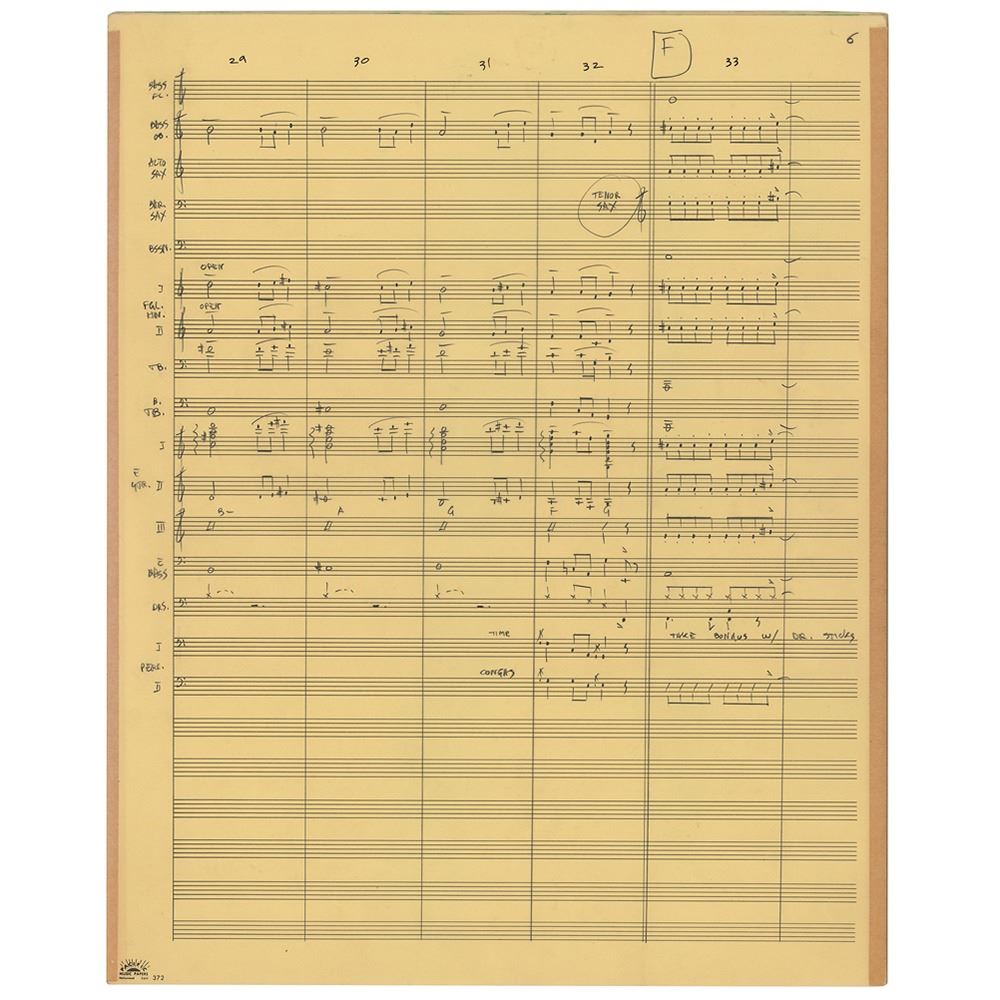 Included with the manuscript are ozalid copies of four sets of instrumental parts for ‘Think It Over,’ which Zappa had originally annotated in black ink. Instruments include: Keyboard (4 pages), Bass Clarinet and Piccolo (2 pages, with mention of “Mike,†presumably reed master Mike Altschul), Trombone I (3 pages), and Trombone III (3 pages, with mention of “Bruce,†presumably trombonist Bruce Fowler). In fine condition, with two taped tears to the cover of the bound score.