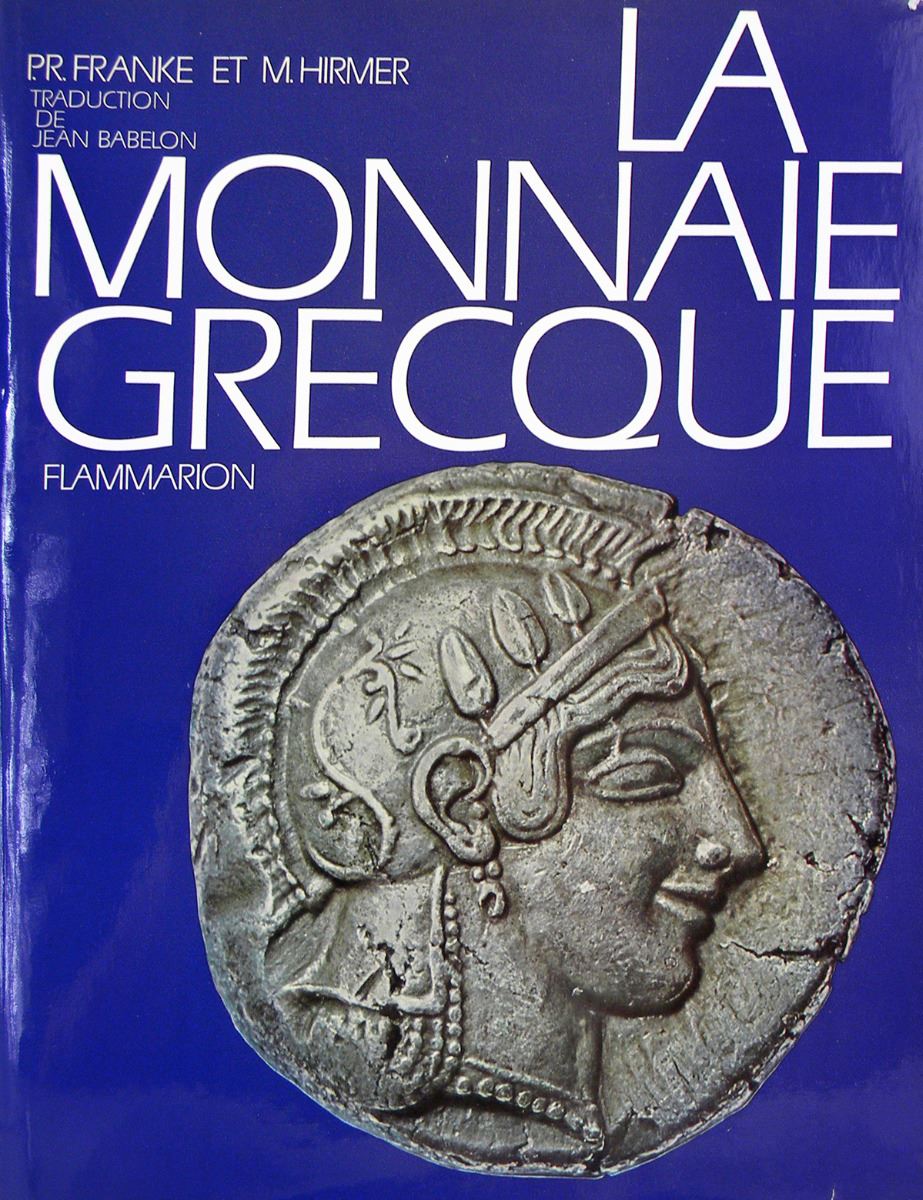 Franke, Peter R., and Max Hirmer. LA MONNAIE GRECQUE. Paris: Flammarion, 1966. Large 4to, original blue cloth, gilt. 153, (1) pages; 240 most attractive plates of enlarged illustrations of coins, 20 in full color. Housed in original cardboard slipcase. A bit musty, with some marginal staining. Very good. This French translation, by Jean Babelon, of Die griechische Münze is not noted by Grierson. It retains the same magnificent illustrations found in the original 1964 German edition (see above) and also the English version of this indispensable work--Kraay & Hirmer’s Greek Coins--published as well in 1966. Of the three, this edition appears to be the least available. A landmark work in numismatic book illustration, filled with useful and important information. Clain-Stefanelli 1824.