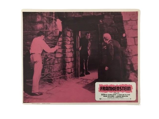 Set of 6 Frankenstein color lobby cards. Staring Boris Karloff, Colin Clive, Mae Clark, John Boles. Printed in Mexico.