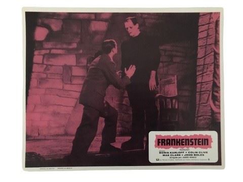 Set of 6 Frankenstein color lobby cards. Staring Boris Karloff, Colin Clive, Mae Clark, John Boles. Printed in Mexico.