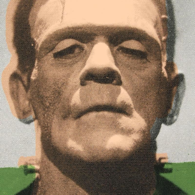 "Frankenstein" is a one-of-a-kind hand-pulled silkscreen and mixed media painting on canvas by Ringo. This piece is hand signed by the artist and comes from the Andy Warhol Legacy Series. Includes Certificate of Authenticity. Due to the nature of the canvas, these pieces will need to be mounted for framing. Measures approx. 12" x 16" (image).