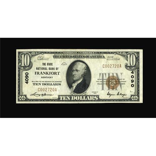 <B>Frankfort, KY</B></I> - $10 1929 Ty. 1 <B>The State NB</B></I> Ch. # 4090<BR> This is a well embossed note with a few folds present. <B>Extremely Fine.</B></I><BR><BR><b>Shipping:</b> Coins & Currency (<a target="_blank" href="http://www.heritageauctions.com/common/shipping.php">view shipping information</a>)