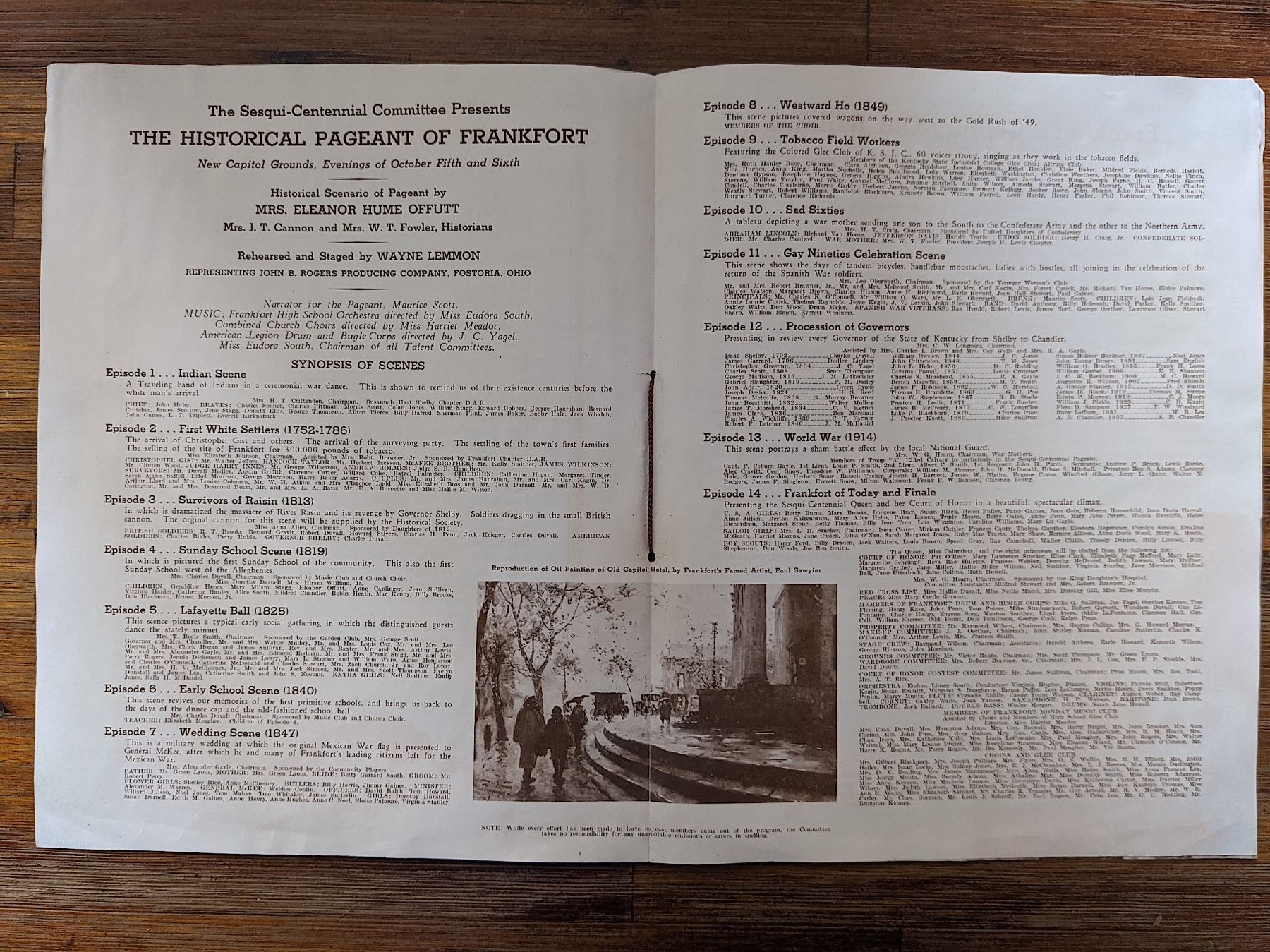 Frankfurt KY sesqui centennial pageant program illustrated 1936 (1786 - 1936).