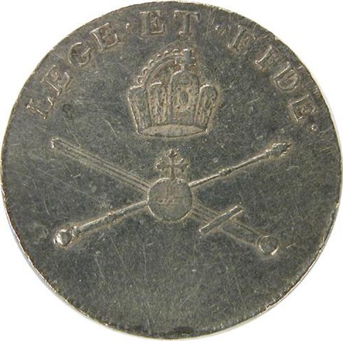 1792 Pattern in Silver of the designs of the 1-1/4 Ducat KM# 284, but of smaller diameter, 20mm 2.1 grams, EF+, hairlined. Pale toned