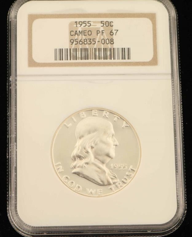 1955 50C Cameo PF 67 in case from Numismatic Guaranty Corporation of America.