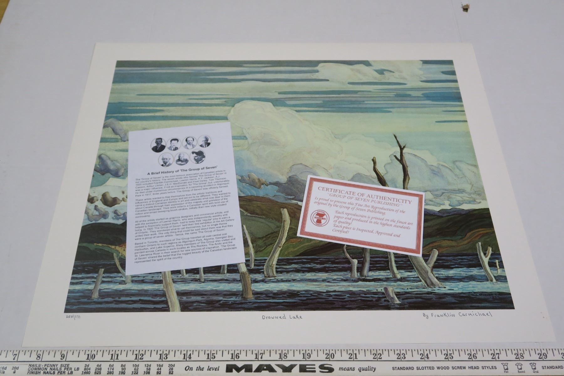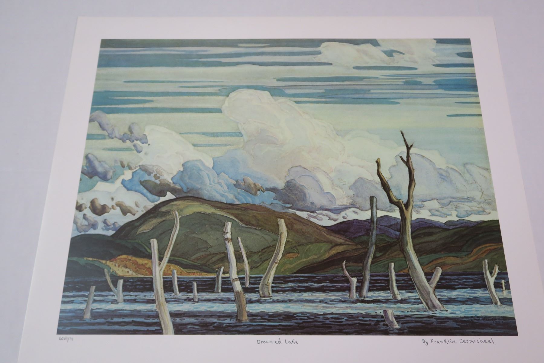 Print of Franklin Carmichael's "Drowned Lake" Piece. Franklin Carmichael was part of "The Group of Seven". Also sometimes known as the Algonquin School, the Group of Seven was a group of Canadian landscape painters from 1920 to 1933, originally consisting of Franklin Carmichael (1890–1945), Lawren Harris (1885–1970), A. Y. Jackson (1882–1974), Frank Johnston (1888–1949), Arthur Lismer (1885–1969), J. E. H. MacDonald (1873–1932), and Frederick Varley (1881–1969)