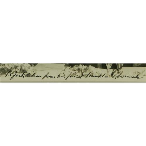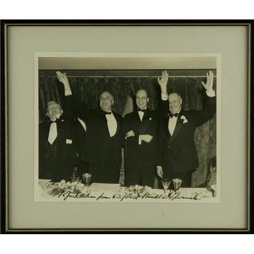 <B>Franklin D. Roosevelt Exceptional Autographed Photo with Vice President John Nance Garner and other Leading Democrats.</B></I> A fine 8" x 10" glossy, probably a wire photo. FDR has boldly inscribed in heavy black ink across the bottom: "<I>To Jack Wilson from his friend Franklin Roosevelt.</B></I>" Beautiful condition.