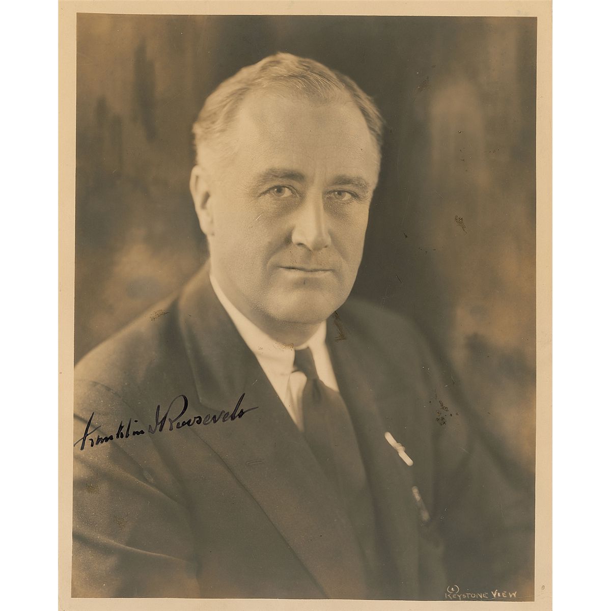 Matte-finish 8 x 10 photo, boldly signed in fountain pen. Some rippling to horizontal edges, tape remnants to reverse, and a few edge and corner tip creases, otherwise fine condition.