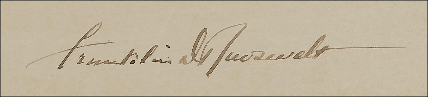 Partly-printed DS as president, one page, 22.5 x 18.25, December 20, 1939. Roosevelt appoints Jerome C. Hunsaker “a member of the National Advisory Committee for Aeronautics for a term expiring five years. Signed at the conclusion by Roosevelt, and countersigned by Secretary of State Cordell Hull. Document has apparently been mounted, then framed to an overall size of 25.5 x 21. In very good condition, with a couple shades of overall toning, damp staining to lower left corner and edges, and a couple trivial wrinkles. The white wafer seal is toned, but intact. Hunsaker’s career spanned the very existence of the aerospace industry, from the beginnings of aeronautics to the exploration of space. After receiving this appointment to the NACA (the civilian government organization performing research into aviation) from FDR, Hunsaker went on to serve as the committee’s chairman from 1941 to 1956. Establishing the the Department of Aeronautics at the Massachusetts Institute of Technology, he was considered one of the most influential people in the growth of the aeronautics industry. Interesting association between FDR, aeronautics, and the eventual space race.