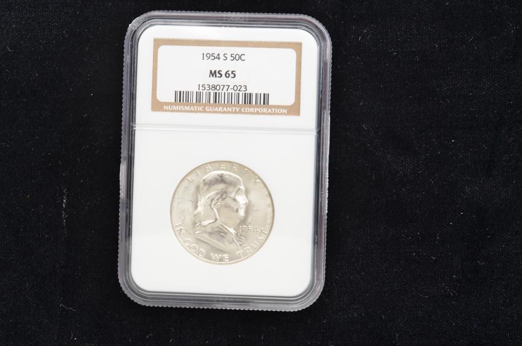 Franklin Half Dollar 1954-S, NGC MS65 in case. Est.: $35-$70.