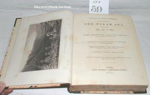 Franklin, John. NARRATIVE OF A SECOND EXPEDITION TO THE SHORES OF THE POLAR SEA, IN THE YEARS 1825, 1826, AND 1827 ........ London: John Murray 1828 4to. xxiv,320,clviipp. plus errata leaf. Thirty-one plates, 6 folding maps. In modern half calf & marbled boards, spine gilt, marbled edges. Occasiopnal minor spotting in margins of some plates, but a very good copy, Uniformly bound with lot 58