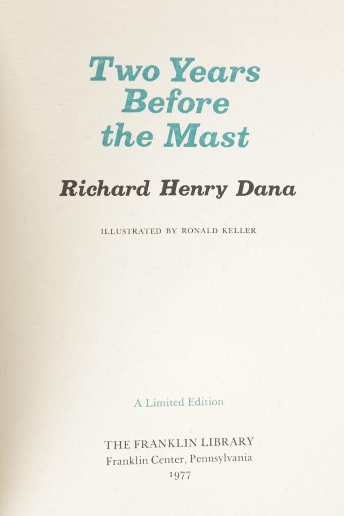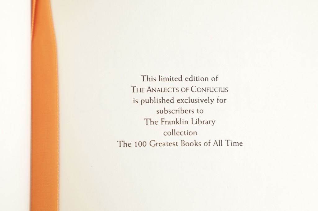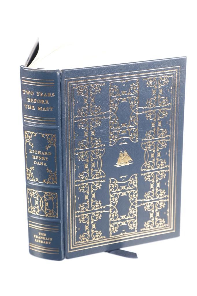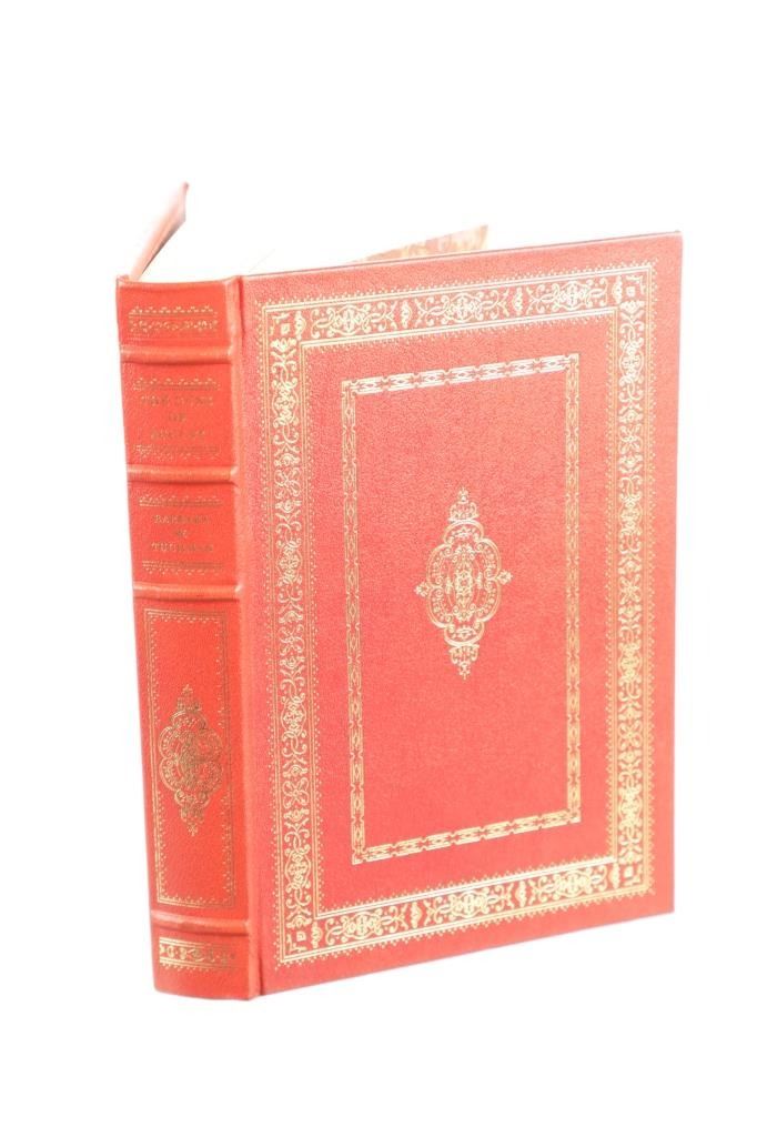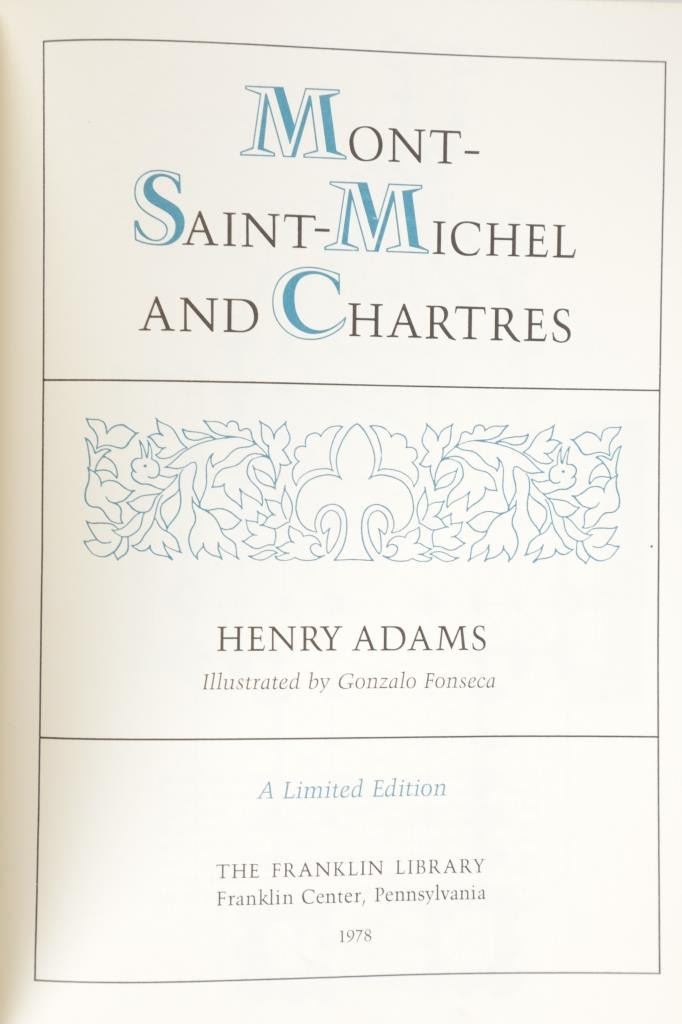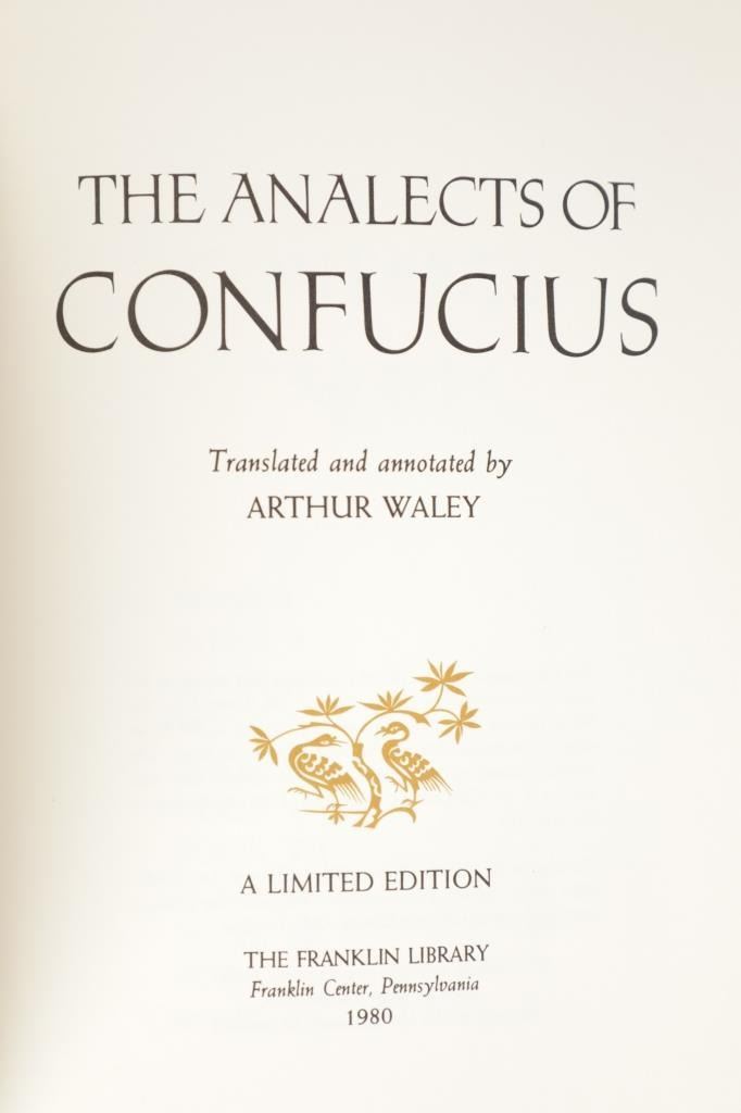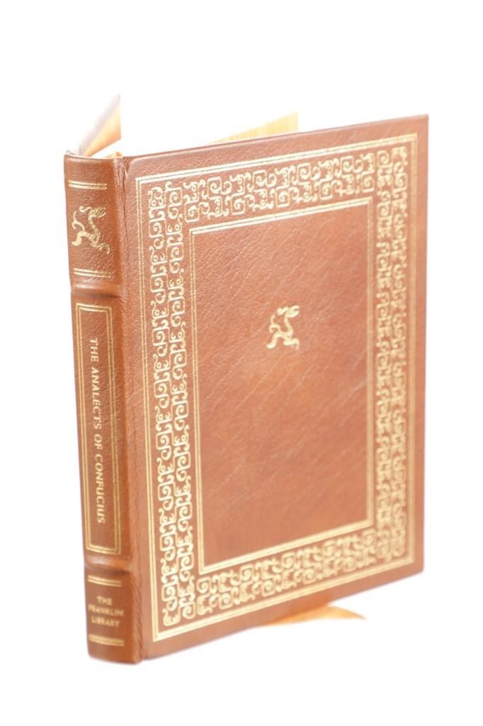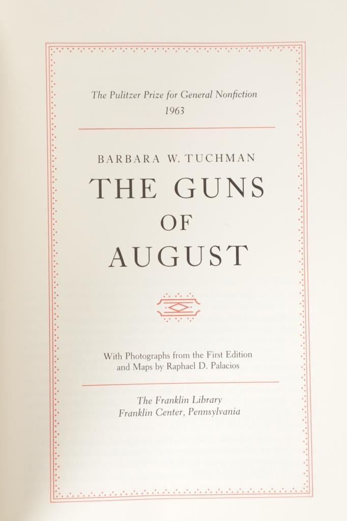 Featured in this lot are six Franklin Library leather bound & gilt non-fiction books, presented by The Franklin Library circa 1977-1984. The books in this collection are non-fiction and and include various topics and history. They show beautiful colors of leather binding and various designs of gold gilt on the spines and front covers. The edges of the paper are also gilted in gold color. The books in this collection are as follows - "The Guns of August" by Barbara W. Tuchman, "Two Years Before the Mast" by Richard Henry Dana, "Mont-Saint-Michel and Chartres" by Henry Adams, "The Analects of Confucius" by Confucius translated and annotated by Arthur Waley, "Black Night, White Snow: Russia's Revolutions 1905-1917" by