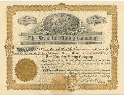 Stock certificates from the United States and other countries around the world. Items offered cover a wide variety of collecting topics including automotive, railroads, mining, autographed and much more.