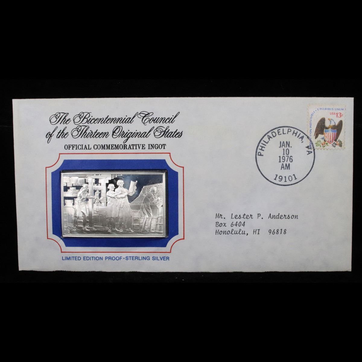 Franklin Mint, Bicentennial Council of Thirteen Original States Official Commemorative bar . . 1.73oz.925 Sterling Silver.