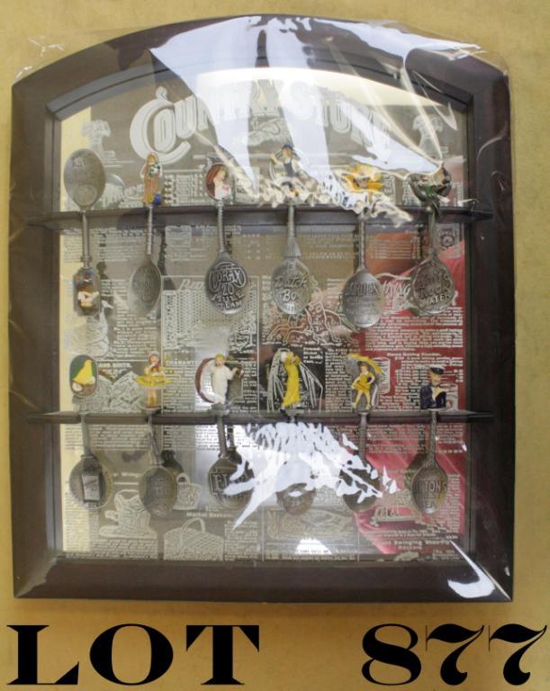 Franklin Mint “Country Store” collection of 12 manufacturer’s logo display spoons and display wall unit with stenciled mirror back piece in excellent condition at time of description; includes spoons commemoratingBorax, Morton Salt, Bon Ami cleaner, Lipton’s tea, etc. Est.: $50-$100.