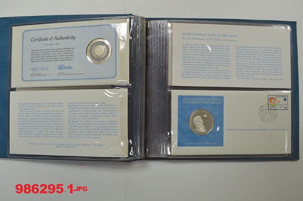 United Nations. Medals in First Day Covers. UNDRO; Vienna International Center; Namibia; International Court of Justice. Sterling Silver Proofs. 5 pieces.