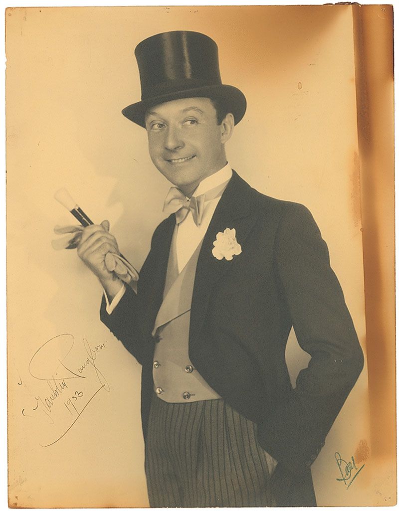 Vintage matte-finish 10.5 x 13.5 photo of Pangborn in his typically dapper attire, signed in fountain pen, “Franklin Pangborn, 1933.” Also bears the photographer’s notation in pencil to the lower right, “Ball,” with a Russell Ball photographer’s stamp to the reverse. In very good condition, with significant staining to the right side affecting the overall appearance, tack holes to corners, and slightly trimmed edges.