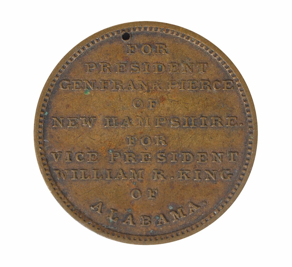 Two different campaign tokens from the 1852 presidential election, each about 1? in diameter, designated as FP 1852-3 and 1852-5 in DeWitt/Sullivan. In overall fine condition.