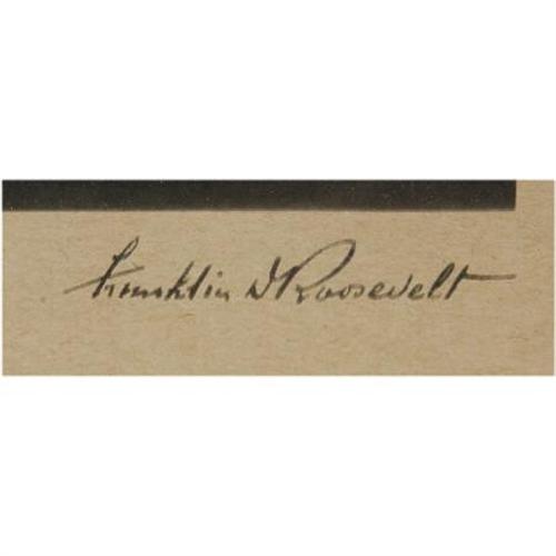 <B>Franklin Roosevelt Pach Bros. Portrait Signed.</B></I> Superb portrait of FDR with copyright from Pach Bros in lower right hand corner. Signed by the president below portrait: "<I>Franklin D. Roosevelt"</B></I>. Fine condition with stylish wood frame, 14" x 19.75" as framed.<BR><BR><b>Shipping:</b> Framed - with Glass, Small (<a target="_blank" href="http://www.heritageauctions.com/common/shipping.php">view shipping information</a>)