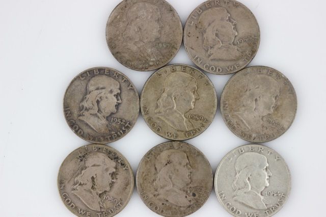 This lot includes eight Franklin Silver Half Dollars. These wonderful lot includes Franklins from the 1950 all in varies condition with a nice dark toning. These coins would make a fantastic addition to any coin or silver collection.