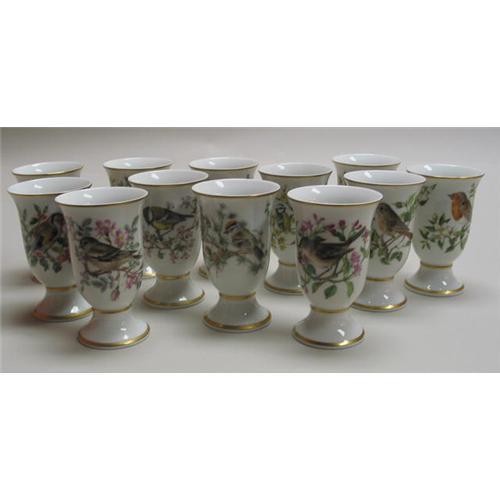 Set of 12 drinking vessels from France. Inscribed under base 'Oiseaux Chanteurs de L'Europe' (song birds of Europe) Limited editions dated 1981 by