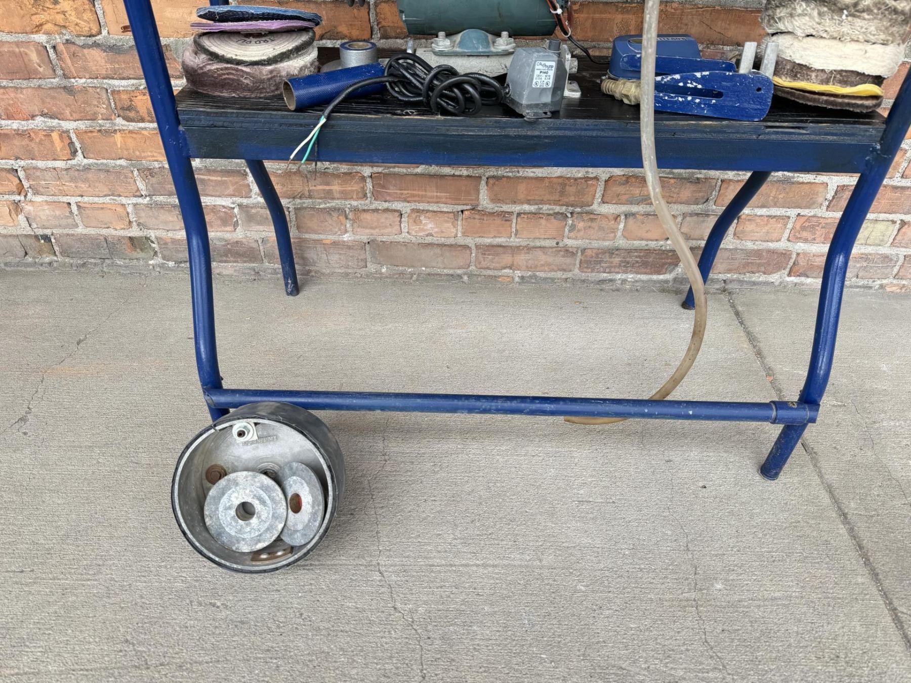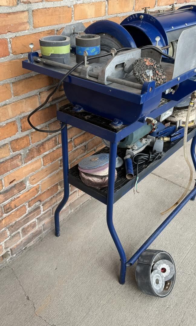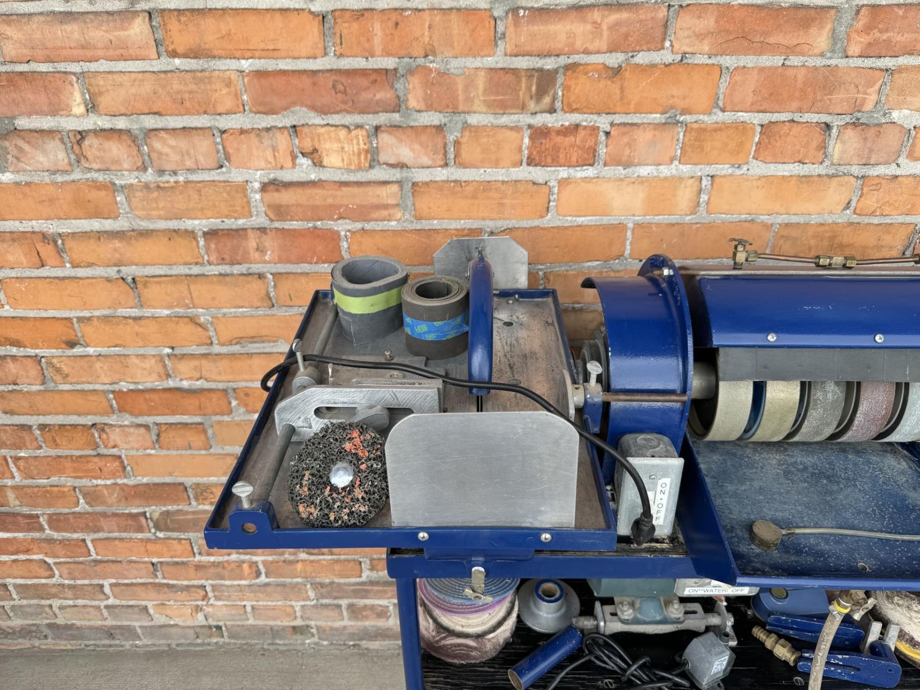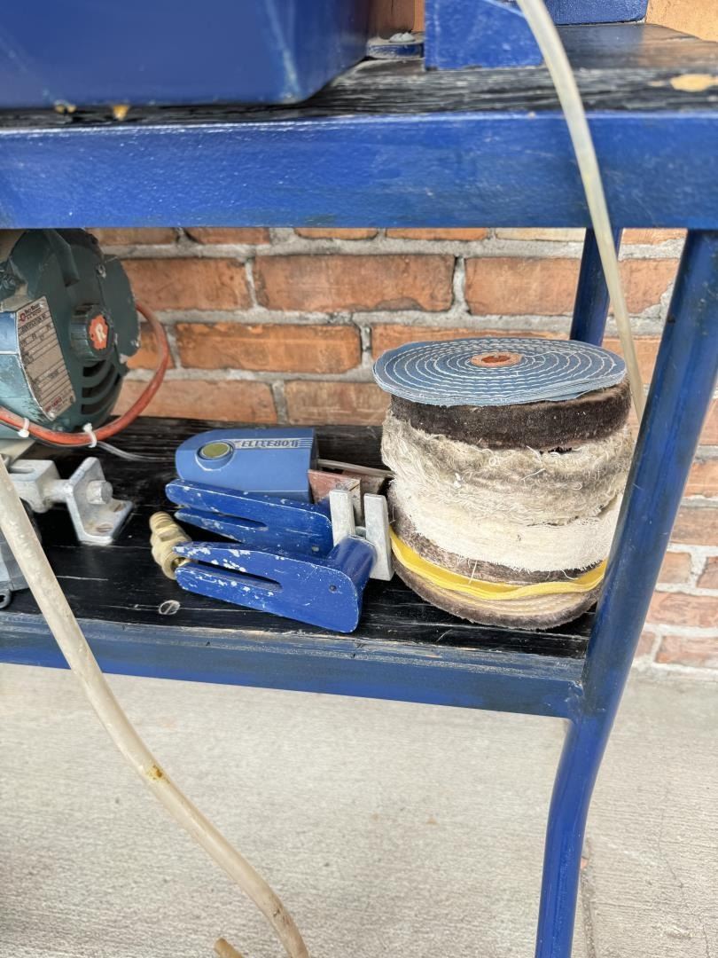 Very nice complete setup. Buffing wheel is 8", cutting wheel is 10". 40" by 44" by 19". Machine will be packed in several boxes. Buyer is welcome to pickup at our facility or pay LTL freight.
