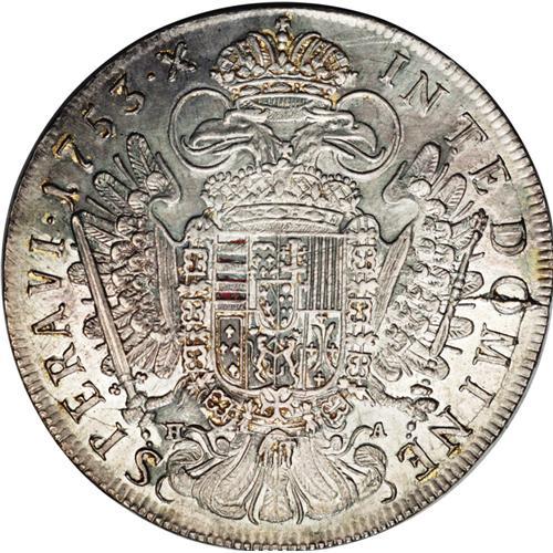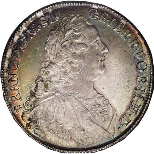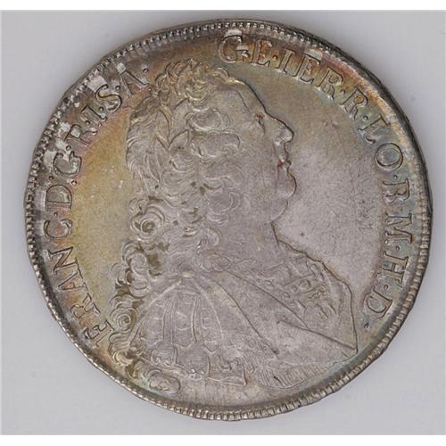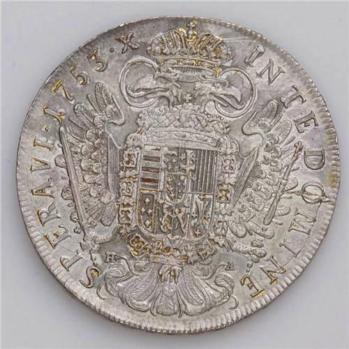 <B>Franz I Taler 1753HA Hall, </B></I>KM2038, D-1153, nice AU with attractive mostly golden toning over a pale silvery base, there are some flecks of easily removable old lacquer on the reverse.
