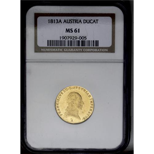 <B>Franz I gold Ducat 1813A, </B></I>KM2169, MS61 NGC, an attractive example with abundant mint luster.