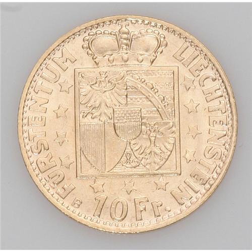 <B>Franz Josef II gold 10 Franken 1946B, </B></I>KM-Y13, choice BU.