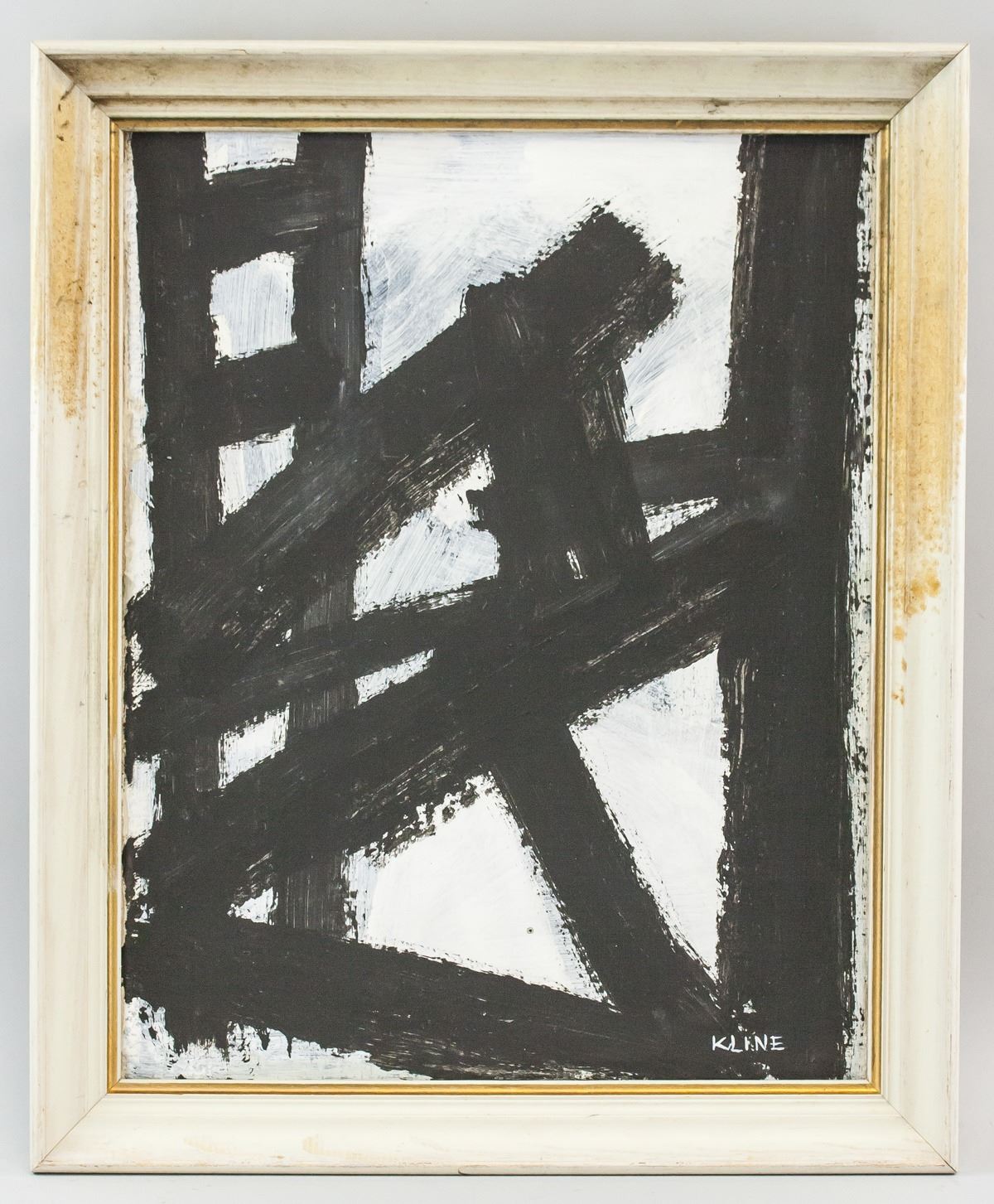 Oil on canvas, framed. Featuring an abstract expressionist composition with broad black lines. Signed KLINE on the lower right corner. Attributed to Franz Kline (1910-1962, American). 41 x 51 cm (16 x 20 in0, Frame: 48 x 58 cm (19 x 27 in). PROVENANCE: This lot carries limited provenance from a Southern Ontario estate