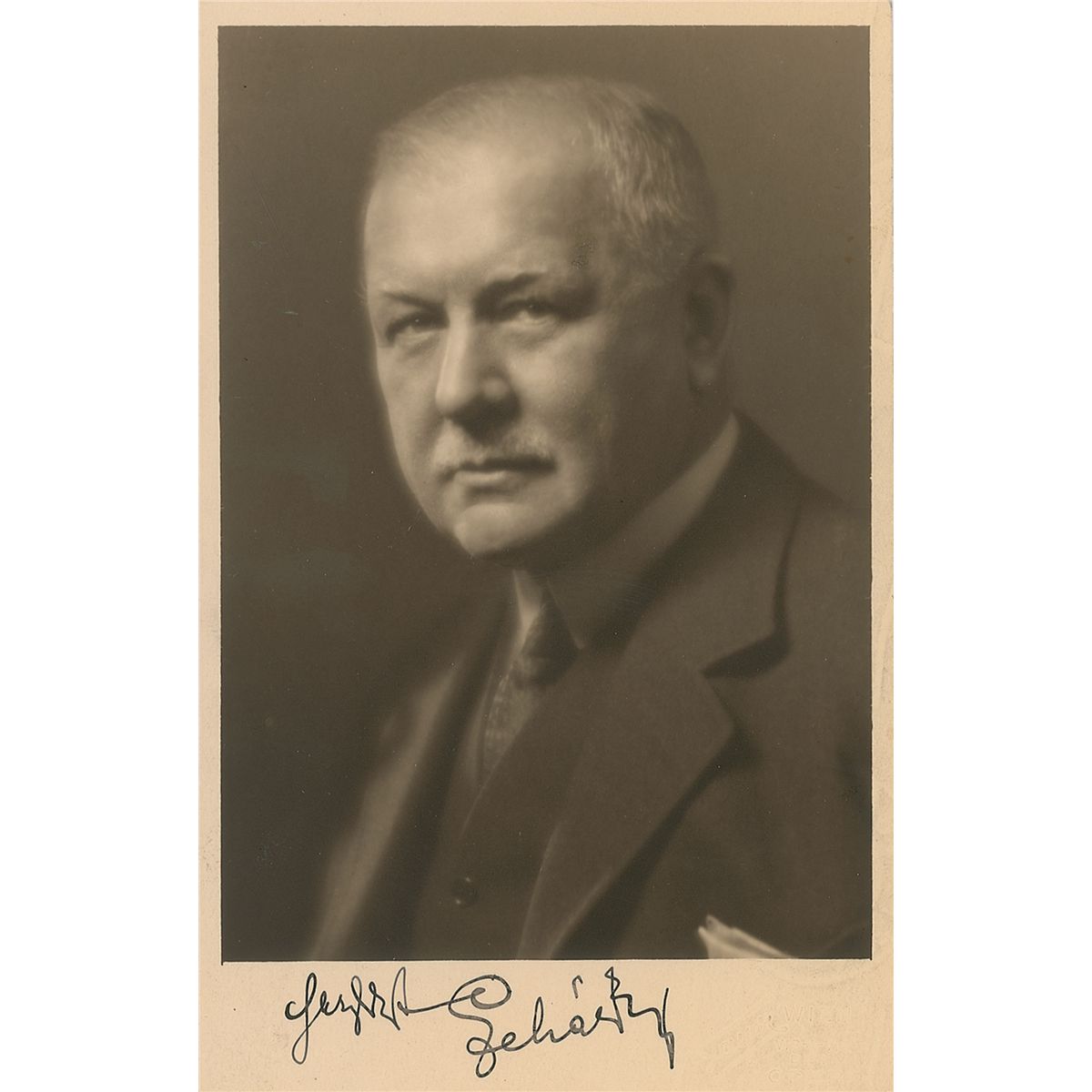 Handsome matte-finish 3.25 x 5.25 postcard photo of Lehar in a head-and-shoulders pose, signed in the lower border in fountain pen. In fine condition, with surface impressions to the right side.