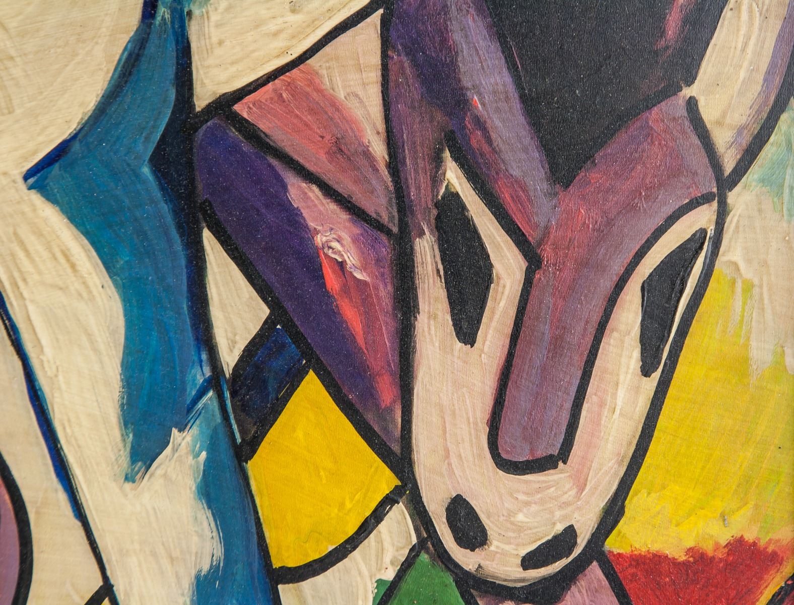 Acrylic on panel. Featuring cubist figures of horses. Signed Franz Marc and inscribed 1913 on the lower right corner. Attributed to Franz Marc (1880-1916, German). 38 x 54 cm (15 x 21.3 inches). Private European collection