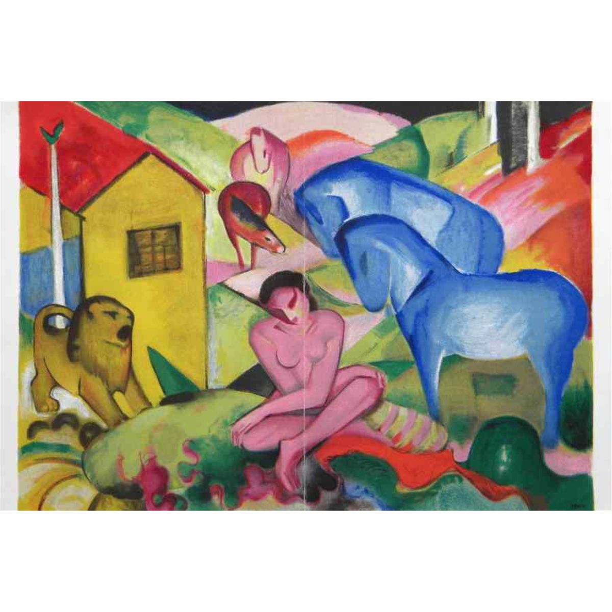 Franz Marc "Le Reve" (The Dream) Lithograph - Published In 1962 By Derrière Le Miroir For "Der Blaue Reiter" Issue (No. 133-134). Sheet Size: 15 X 22 Inches; There Is Text On Verso And A Center Fold, As Published. Derrière Le Miroir Was The Legendary Art Revue Published In Paris By Aime Maeght, From 1946 Through 1982. - Professionally Framed & Matted - Comes With Certificate - -