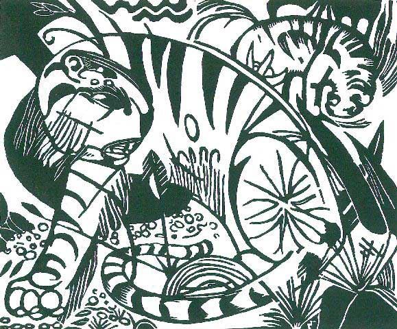 Artist: Franz Marc - Title: Tiger - Medium: Fine Art Reproduction Giclee on Canvas - Image Size: Approximately 26.5 inches x 32 inches - Unframed on Unstretched Canvas - Biography: Franz Moritz Wilhelm Marc (8 February 1880 - 4 March 1916) was a German painter and printmaker, one of the key figures of German Expressionism. He was a founding member of Der Blaue Reiter (The Blue Rider), a journal whose name later became synonymous with the circle of artists collaborating in it. - His mature works mostly depict animals, and are known for bright colouration. He was drafted to serve in the German Army at the beginning of World War I, and died two years later at the Battle of Verdun.