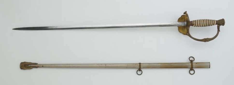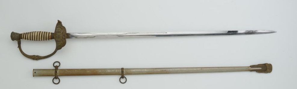 Fraternal Order sword and metal scabbard by Pettibone in overall fair to good uncleaned condition, approx. 33” overall with a 27” plain blade. Est.: $75-$150.