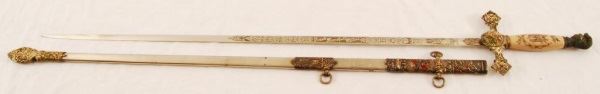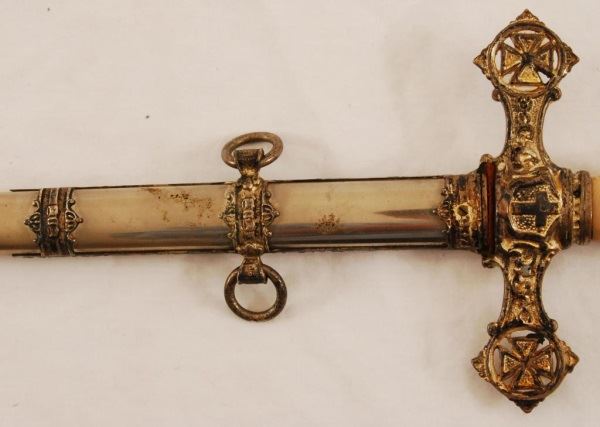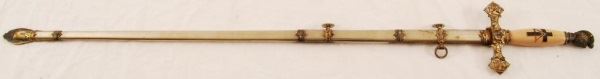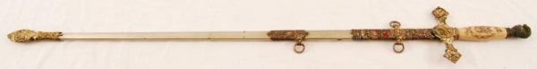Sword. Measurements: Handle7 inches & blade 32 inches. Silver with cross