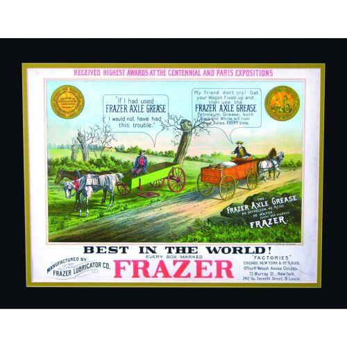 Frazer Axle Grease Cardboard Sign. Has small tear at 4:00 and 10:00 otherwise excellent condition. 13 1/2 X 10 1/2 inches.