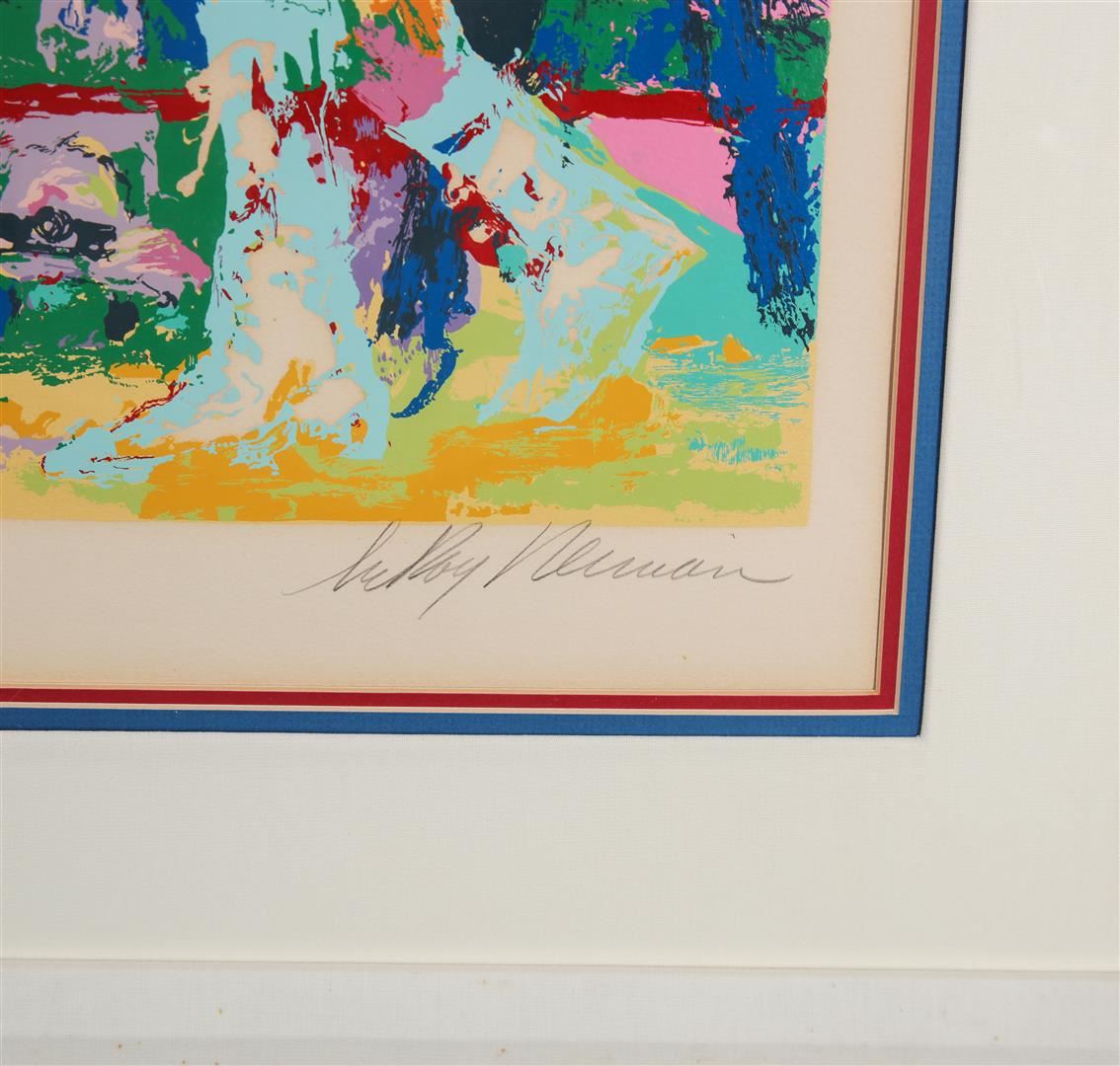 This limited edition serigraph is the A/P (Artist Proof) and is pencil signed by world famous artist LeRoy Neiman. LeRoy Neiman was an American artist known for his brilliantly colored, expressionist paintings and screen prints of athletes, musicians, and sporting events. 36" x 40" framed.