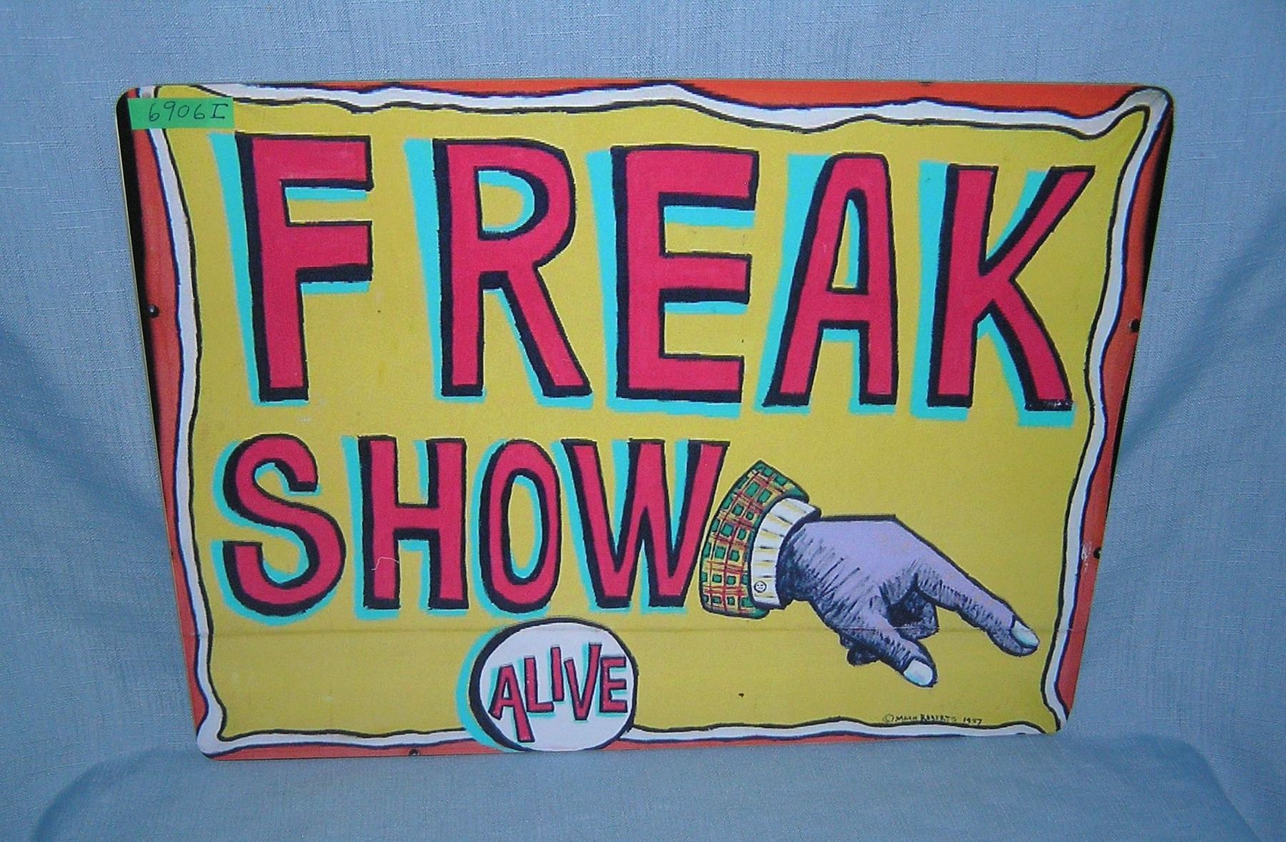 Freak show Alive retro style advertising sign printed on PVC hardboard these signs are auctioned for their decorative and display purposes 12 inches by 16 inches est. value $50.00-$60.00