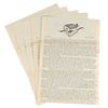 Five TLSs signed in pencil, one signed “Mr. A” and four signed “F,” totaling nine pages on five sheets, circa mid-1930s. Interesting collection of letters concerning show business. One, in part (spelling and grammar corrected): “Jack Benny’s second picture opens at the Astor this week. It was mentioned for the Capitol but Mutiny on the Bounty goes in there. I guess Tone and Gable must have pulled strings.” Another, in part: “The picture is held over a third week at the center and the business has been very good. We finally saw it and my reaction was about as you predicted. I thought I looked like a gargoyle in a lot of the shots and to me, knowing the story routine, it looked as though the picture had been cut by a rabbi. It seemed to jump from one bit to another without any development or without smoothness and plot exposition. Everyone seems to like it and the notices were excellent in the papers and perhaps I am wrong but to me it didn’t look so hot.” A third, in part: “We went to see the preview of Coronado Tuesday night. We didn’t get to the theatre until ‘Millions in the Air’ was finishing. I don’t know what this picture was about but at the finish the audience hissed. Knowing the Coronado story I had grave doubts as to the outcome before a midnight audience at the Paramount but order was restored and the picture got under way.” In overall very good to fine condition, with a block of light toning to one of the letters.