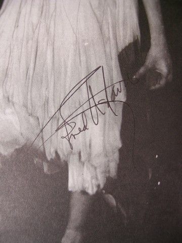 This is a vintage, autographed Fred Astaire promotional b&w photo featuring the dancing legend in an elegant pose with his leading lady. The autograph is written in black ink just above her left knee. A wonderful piece to add to any autograph collection. (measures approx. 8"x 10")